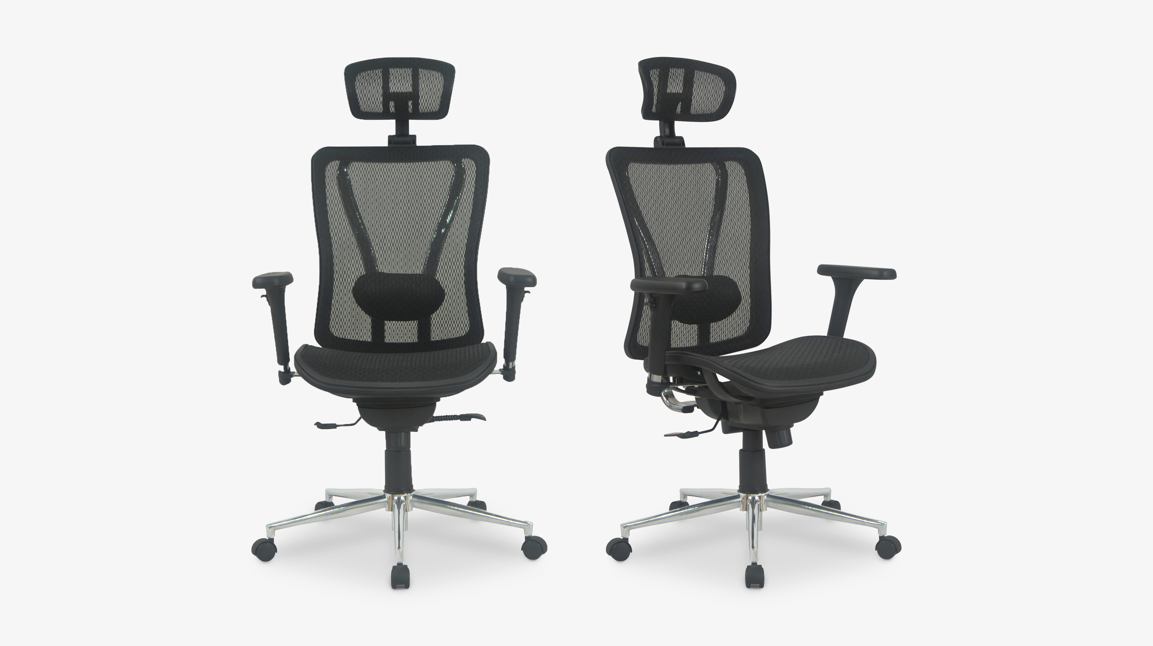 - Confort et maintien : appuie tête pivotant et ajustable, maintien lombaire réglable, hauteur d'assise ajustable, accoudoirs réglables, inclinaison du dossier réglable.